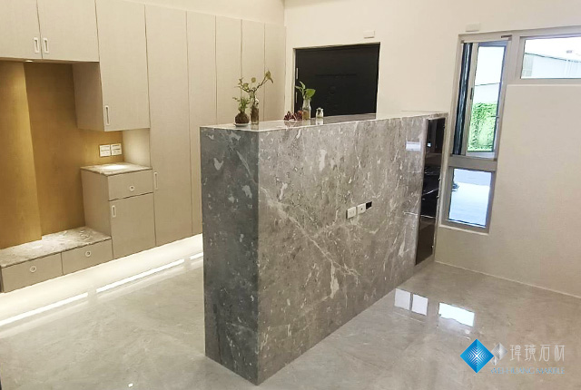 一石多用,使用同一塊石材運用在兩個不同的裝潢設計上,更能為空間增加一致性,質感提升,是很加分的設計小撇步